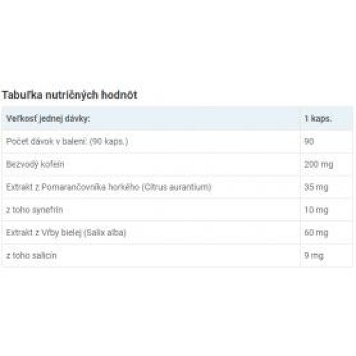 Efedrin 20-25 mg, kofein 200 mg, Aspirin 75-300 mg na dávku